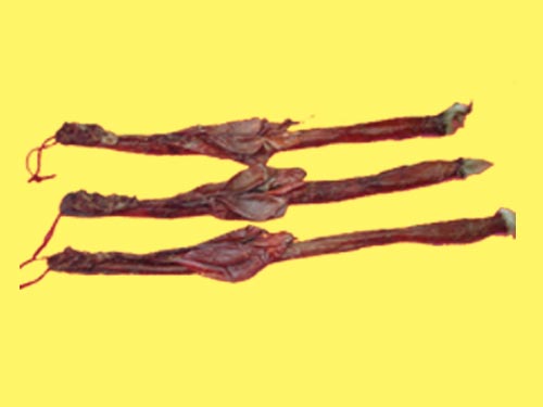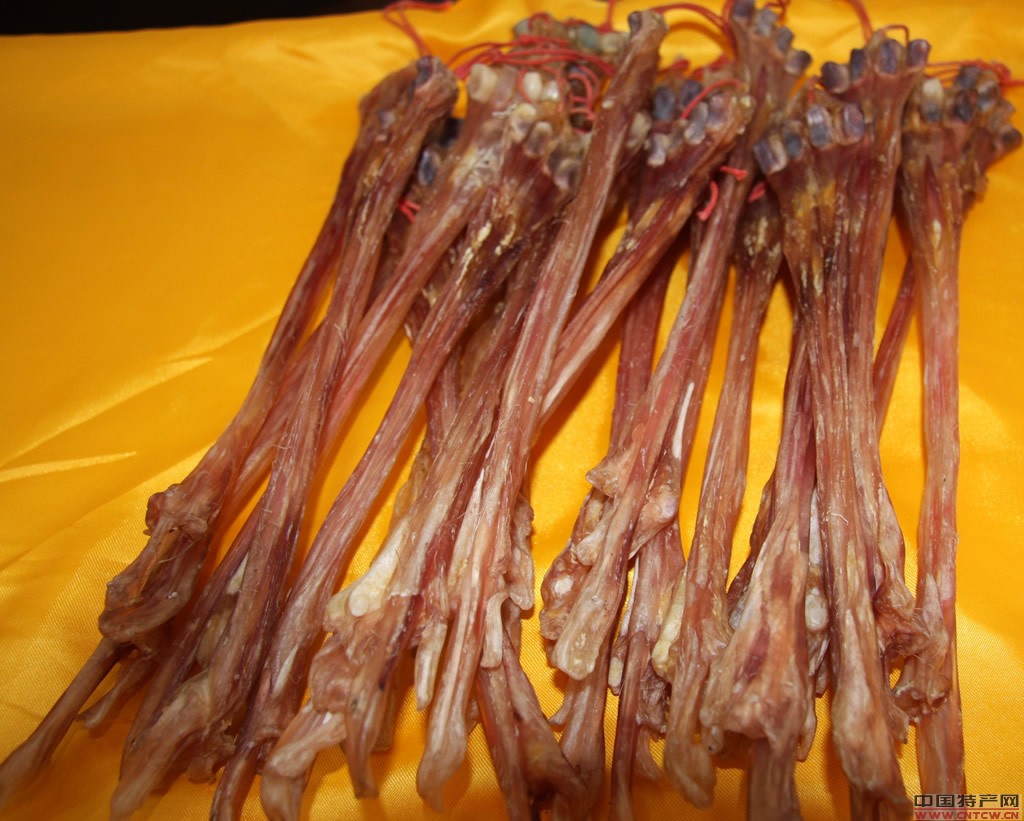 鹿筋系梅花鹿、白唇鹿、马鹿四肢去肉的肌腱,经过先进科学方法精制而成。本品为绝好的滋补品,是强筋壮骨的妙药,对各种疲劳损伤、四肢无力、肾虚等症有神奇的疗效。