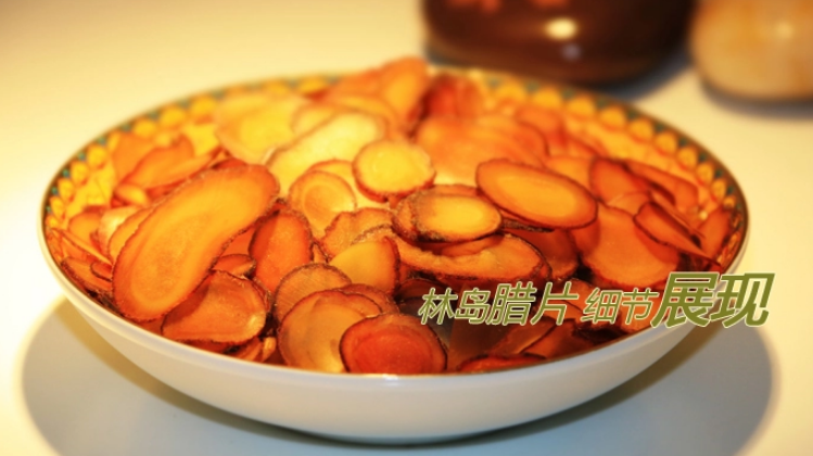 蜡片是鹿茸片中的极品。顶端的茸最嫩,外皮厚,呈黄棕色,发亮,内圈黄白色半透明,油润如蜡,刨成膜状薄片,称为“蜡片”。