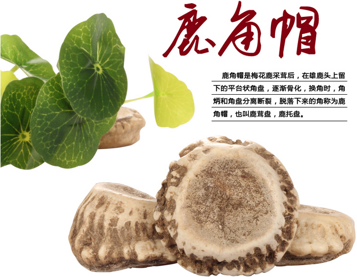林岛鹿角帽是梅花鹿釆茸后,在雄鹿头上留下的平台状角盘,逐渐骨化,换角时,角炳和角盘分离断裂,脱落下来的角称为鹿角帽,也叫鹿茸盘,鹿花盘。