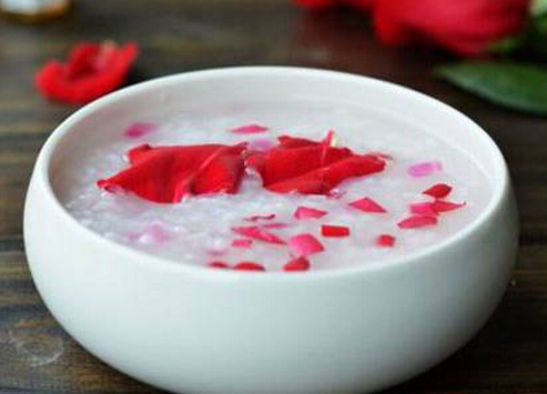 长期食用玫瑰花,不仅可使人拥有清新体香,还可促进血液循环,使肤色红润、美丽。而熬花粥,最好采用经过脱水处理的尚未开放的小小玫瑰花蕾,所有营养物质都“含苞”在尚未开放的花蕾中。用新鲜粳米熬制成粥,煮熟后加入适量的玫瑰花蕾,待粥熬成粉红时,即可食用。常食玫瑰花粥,可悦人容颜,使皮肤更加细腻有致,还可治疗肝气郁结引起的胃痛,对情绪方面有镇静、安抚、抗忧郁的功效。